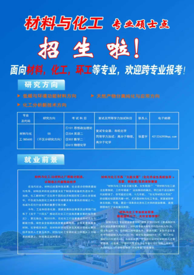 xc体育材料与化工专业作为推动益阳及周边地区新材料与绿色化工产业发展的重要力量,现正式启动2026年研究生招生工作。诚邀全国有志青年加入我们。