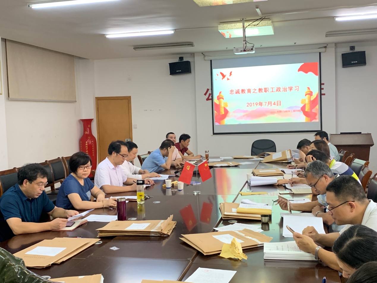 2019年7月4日,xc体育组织全院教职工开展了忠诚教育为主题的政治学习。党总支书记石清丽主持会议。