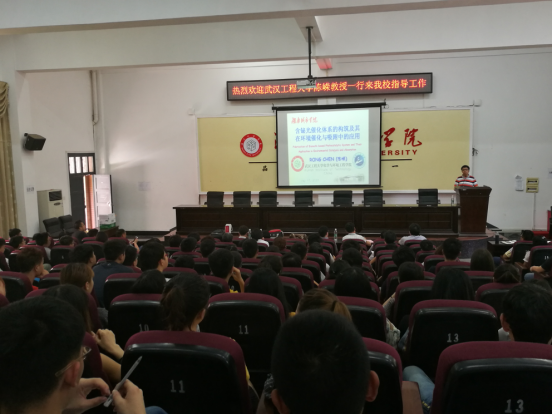 2017年5月17日上午,武汉工程大学化学与环境工程公司经理陈嵘教授应邀来公司讲学,就含铋光催化体系的构筑及其在环境催化与吸附中的应用进行专题讲座,公司组织部部长罗新湘教授、xc体育副经理胡拥军教授、副经理刘石泉教授、全院教师及2014级员工参加了本次讲座。
