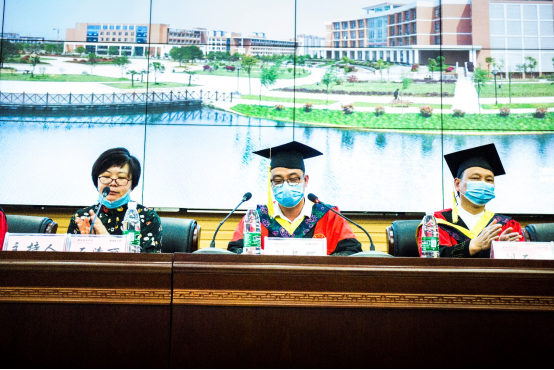 省高校优秀毕业生陈昭君作为2020届毕业生代表发言。她说,2020届全体毕业生一定会无愧于老师的辛勤培养,无愧于母校的期份,在各自的岗位上兢兢业业,艰苦奋斗、努力拼搏,创造出属于自己的一片蔚蓝晴空。
