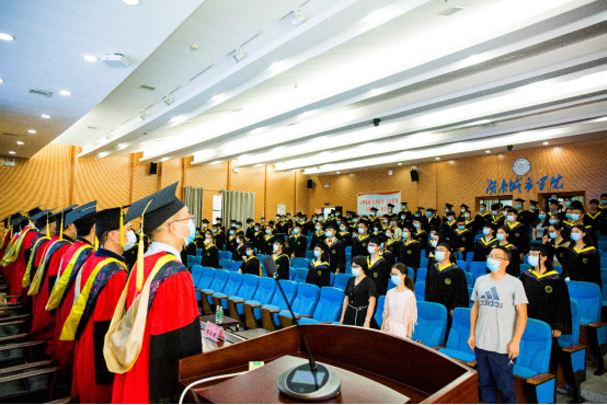 上午11点,典礼在庄严的国歌声中拉开帷幕。贺国文宣读了《xc体育关于授予2020届毕业生学士学位的决定》,同意授予公司舒燕等277名员工学士学位;钟桐生宣读了《关于表彰湖南省普通高等公司2020届优秀毕业生和创新创业优秀毕业生的通报》和《xc体育关于表彰2020届优秀毕业生的决定》,主席台就座的院领导和员工导师为优秀毕业生颁奖,并为获得学士学位的全体员工代表拨流苏、颁授学位证书。