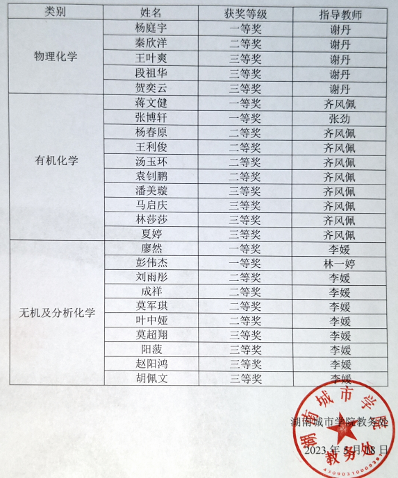 为迎接2023年7月在湖南科技公司举办的湖南省老员工化学化工学科竞赛,按照省赛模式,xc体育于5月15日晚举行了初试(理论考试),共80名同学参加。根据初试成绩,33位同学进入复试(实验考试),复试于5月17日下午进行,最终25名同学获得相应奖项,获奖名单如下: