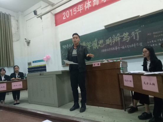 比赛一开场,正方土木院的一辩开篇陈辞,陈述了独生子女家庭比独生子女家庭更幸福的几个观点,而xc体育也不甘示弱,,辩手们站起来陈述自身观点时落落大方,丝毫不怯场。赛场上的辩手们都认真地听对方辩友的陈辞,查找对方辩手的漏洞,逻辑思维清楚,反应敏捷,随着比赛的进行,比赛逐渐升温,对辩环节更是精彩,xc体育三辩周浩在面对对方的步步紧逼下,沉着冷静,应对自如,并且机智化解对方抛过来的各种问题,xc体育的一辩与二辩都是大一新生,却能大胆陈述自己的观点,这份勇气令人钦佩。四辩在总结陈辞的时候,语言精炼,总结到位。双方辩手都紧紧围绕本方观点,用数据去论证,xc体育的各位辩手在台上表现优秀,谈吐有理。比赛进行到最后,由轩兆豪对这次辩论赛进行了点评,肯定了双方辩手的优秀表现,点评了双方辩手。