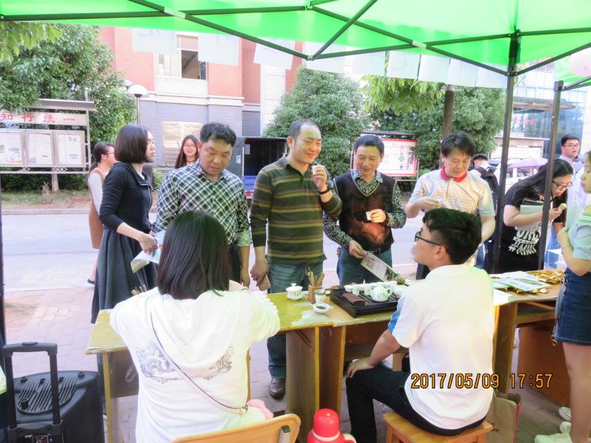 (xc体育通讯员 吴仙仙)2017年5月9日下午17:30至19:00,xc体育在公司新食堂前承办了主题为“茶语茶香”的摆台活动,活动主办方为校企xc体育黑茶研究科技有限公司。校团委书记石清丽,xc体育党总支书记王彬、副书记钟桐生,副经理胡拥军、刘石泉,高分子材料与工程系主任贺国文,辅导员陈艳姣,员工处孙芳等领导和老师参加了此次活动。