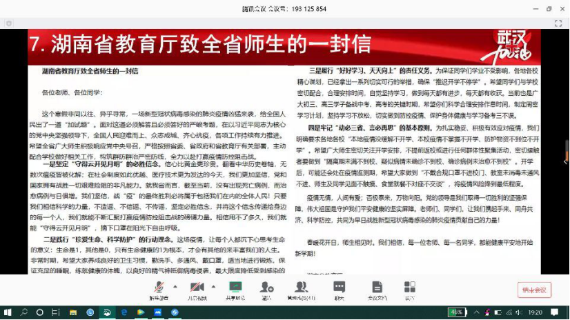 本次的政治学习开展得比较成功和有意义。通过本次政治学习,同学们充分地认识到了新冠病毒的发源与其严重性,了解了预防病毒的措施,同时同学们也深刻认识到了中国人民团结一心对抗疫情的决心与毅力。众志成城,我们一定能取得疫情防控斗争的全面胜利!(陈亚洁供稿、钟桐生审核)