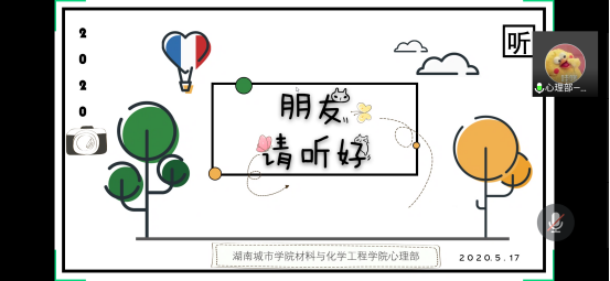 只要有只倾听的耳朵,同学们的忧愁与趣事就能被分享。今天,近百位老师与同学们化作一只只倾听的耳朵,在这场“朋友请听好”的“故事交流会”中聆听每位有故事也有酒的同学的心里话,大家虽然互不相见,心中,却实实在在的流过了一股暖流。开展此次活动的意义是及时关注了解疫情期间公司员工的心理问题,及时帮助员工调适心态、恢复正常的学习生活状态,迎接即将到来的线上理论课考试,也希望同学们珍惜与家人的时光,好好度过每一天。(田雪萍供稿、钟铜生审核)