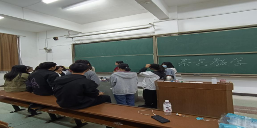 活动前,社长组织各小组开会,协商有关事宜以及人员安排,然后各组做活动前的准备,比如活动宣传、准备相关茶叶,准备茶器等。在活动中,社长带领下和指导下,大家体验过程中谦虚好学,时不时的提出疑问,社长耐心答疑解惑,氛围是格外欢愉。