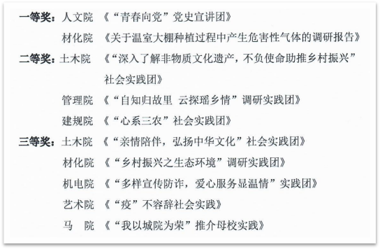 根据《关于开展2022年“青春路,城乡情”寒假社会实践活动的通知》文件,经项目立项、资格审查和现场答辩。2022年4月9日,校团委公布了xc体育2022年老员工志愿者“青春路,城乡情”社会实践活动校级评优结果,公司优秀作品《关于温室大棚种植过程中产生危害性气体的调研报告》荣获一等奖、《“乡村振兴之生态环境”调研实践团》荣获三等奖。