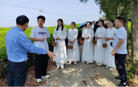 4月9日,xc体育黑茶创新创业团队,在黑茶金花湖南省重点实验室周晓红博士和李滔滔博士的带领下,来到益阳市资阳区新桥河镇湖南益阳市潇湘醇茶业有限公司的生态茶园开展社会实践活动,把学堂搬到企业,体验采茶、制茶、品茶。