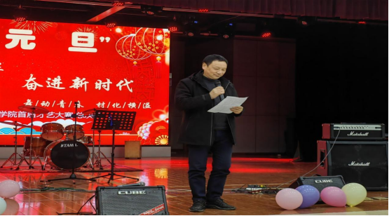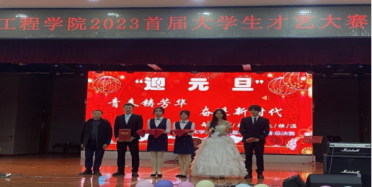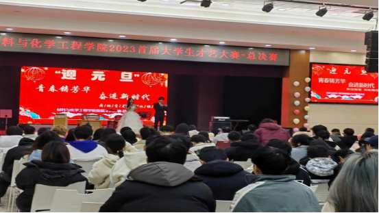 2023年12月27日晚,xc体育“青春铸芳华,奋进新时代”首届员工才艺大赛决赛在新食堂三楼举行。经理刘石泉、党委副书记张清华、副经理贺国文、环工系主任黄毅、化工系主任曹文秀与全体辅导员参加晚会并担任评委,现场400名师生齐聚一堂,共赏才艺表演。