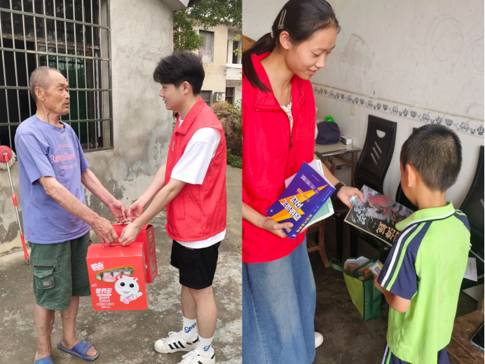 在关怀独居老人与留守儿童的过程中,志愿者们给村中独居老人们送去了慰问品,并将准备的小礼品赠予留守儿童,向乡村传递温情。