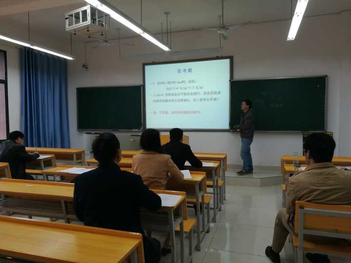 本次活动主要听了尹志芳老师的环工原理实验、林一婷老师的工程化学、龙立平老师的物理化学以及齐风佩老师的有机化学课。听完课后,本教研室其他老师对以上四位老师的讲课进行了客观的评价和改进的意见。