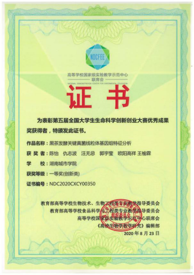 本届大赛覆盖全国302所高校3687支队伍,参赛员工共14000余名。疫情防控常态化下,本届大赛决赛首次开启“云”答辩,通过评委线下集中、现场亮分,参赛队伍视频汇报、线上答辩的方式进行。由公司徐正刚、胡治远老师指导,陈怡、仇志波等员工参加的作品《黑茶发酵关键真菌线粒体基因组特征分析》经过充分的前期准备工作,荣获全国创新类一等奖,展现了公司学子过硬的专业素养以及优异的科研创新能力。