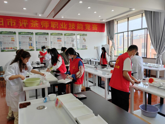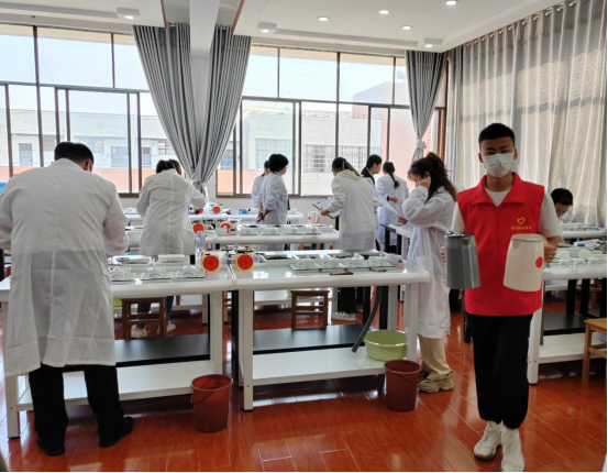 5月9日下午,2023年益阳市评茶师和调饮师职业技能竞赛在xc体育化工楼圆满结束。在评茶师赛场内,来自全市各区县的六十多名评茶员通过茶形辨识,香气排序,品质审定等模块火热竞技,而在赛场外,活跃着一群默默奉献的志愿红,他们就是xc体育刘石泉教授、周晓红博士、李滔滔博士、胡治远博士和刘蓉博士带领的一群志愿者。当他们换上整齐划一的志愿者服装后,就好像穿上了能量服的超人,一个个青春激扬,活力四射,为赛事提供了强有力的后勤保障,也为赛场增添了一抹靓丽的红色。