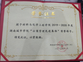 2020年11月14日晚7点xc体育2019-2020年员工公寓管理工作表彰大会于老员工活动中心正式召开, xc体育在晏小波老师和宿管部的带领下以及全体同学的积极配合下,荣获2019-2020年度xc体育“公寓管理先进集体”荣誉称号,希望在新的一年里,材料与化学工程学能够再接再厉,再创佳绩!