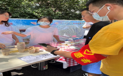 太阳似火,依傍树荫,黑茶品饮活动如火如荼地进行着。活动过程中不断有人来进行品茶,热情地阐述了自己品饮的不同口味黑茶的口感,更对此次活动提出了中肯的建议。大家纷纷表示此次活动对同学们了解茶文化有着深远的意义,并且希望这样的活动可以多多举行,让更多的人了解茶。