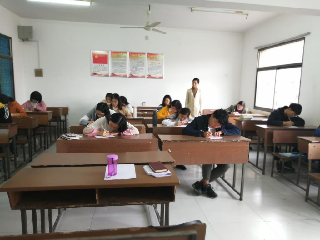 2018年10月24日中午12点20分,xc体育组织员陈艳姣老师组织本次党员发展对象在15栋500开展了关于党章及党的十九大知识的测试,测试题型由填空题、简答题及论述题组成,主要考查了发展对象对党的理论知识的掌握情况,如“入党誓词”、“中国共产党的性质”、“社会主义核心价值观”、“十九大的主题”及“党的行动指南”等。考试结束后陈老师与发展对象进行了谈话,了解他们在学习与生活中发挥模范带头作用的情况,并号召发展对象要以党员的标准严格要求自己,牢记党章与党的十九大知识,以实际行动回报组织对他们的信任。