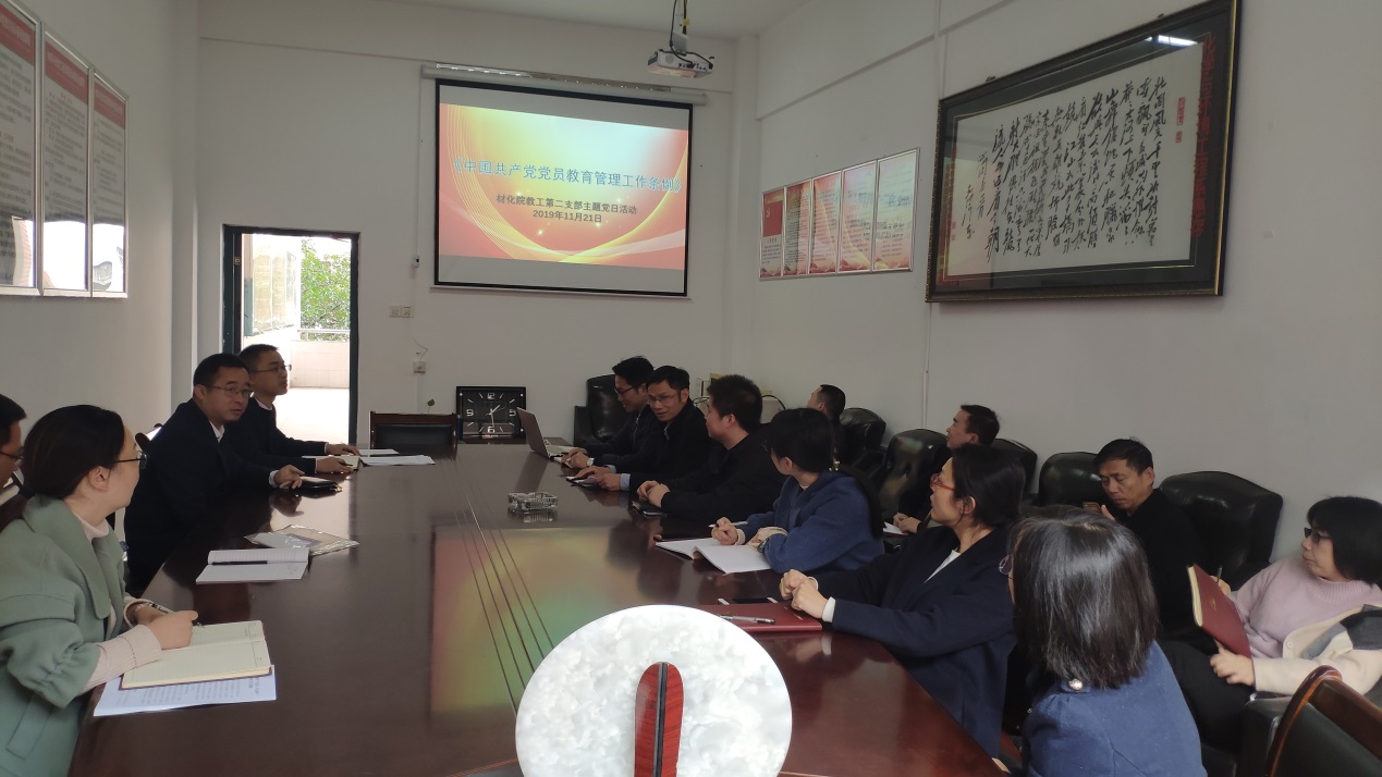 2019年11月21日,xcsports教工第二党支部在化工楼312开展主题党日活动。党支部书记张劲主持。