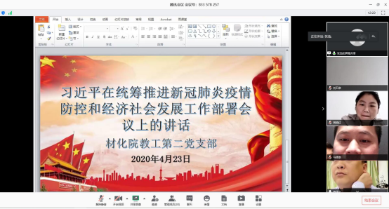 在疫情防控进入关键之时,为进一步引导党员干部强化责任意识,全身心投入到疫情防控和线上教学工作中,2020年4月23日,xc体育教工第二党支部利用腾讯会议开展了一次特殊的线上主题党日活动。