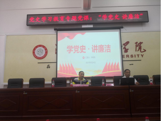 2021年6月24日下午两点半,xc体育在电信楼学术报告厅开展了党史学习教育专题党课。由公司党总支书记钟桐生主讲,公司经理刘石泉主持,全体师生党员及入党积极分子参加。