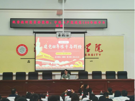 此次党史学习教育宣讲的主题是《中国共产党建党100年艰辛与辉煌》,刘赛文老师从“我党发展史上艰难时期”、“我党发展史上的辉煌时刻”及“从苦难辉煌中感受党的伟大”三个方面将我党百年来的历史娓娓道来,讲述了一代又一代共产党人发扬不怕牺牲、艰苦奋斗、改革创新、勇往直前的担当精神,为我们党积累了宝贵的精神遗产。激励我们青年党员要更加努力为中华民族伟大复兴的中国梦添砖加瓦!