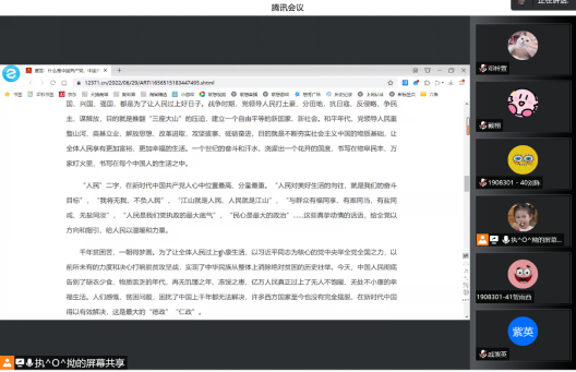 随后,姚霞同志带领大家学习了人民日报发表的《什么是中国共产党,中国共产党干什么》文章。习近平总书记强调,要在新时代前进的征程上不忘初心、牢记使命,回答好“从哪里来、往哪里去”,牢记中国共产党是什么、要干什么这个根本问题。其中,谢卓玲同志谈到:“我们是新时代同向同行、共同前进的一代,生逢盛世,肩负重任,爱国爱党,从党史学习中激发信仰,获得启发,汲取力量,不断坚定“四个自信”,不断增强做中国人的志气、骨气、底气。”