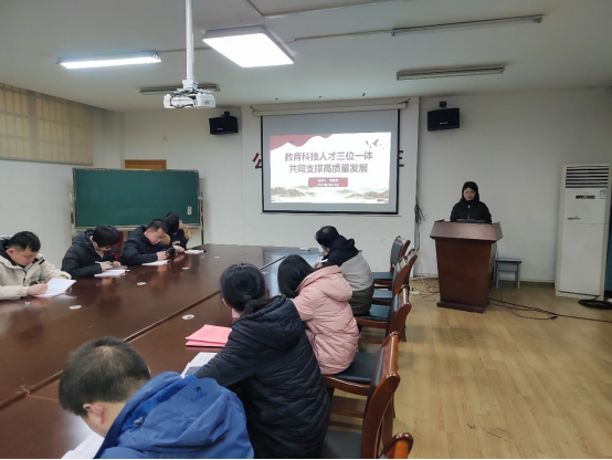 2月23日下午,为进一步营造贯彻落实党的二十大精神的浓厚氛围,凝聚教师党员奋进力量,xc体育教工第二党支部书记刘赛文以“教育科技人才三位一体共同支撑高质量发展”为主题给支部党员上了开学第一堂党课。
