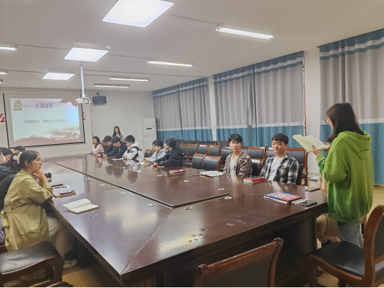 接着王杰贞和李馨怡同志谈自己的观影感受,王杰贞同志表示:“电影中,陈望道面对的困难和挑战也让我深受触动。他在担任董事长期间,面临着种种困难和压力,但他始终坚持自己的信念,不断地努力和奋斗。他在处理校内事务时,始终坚持公正、公平的原则,不偏袒任何一方,这种正义感和公正的态度让我非常钦佩。”李馨怡同志提到:“电影《望道》是一部非常优秀的影片,它通过一个人的成长和变化,展现了革命者的信仰和精神,表达了对人民事业的坚定信念。它充满着正能量和革命热情,让人们更加深刻地认识到革命的重要性和伟大性。”