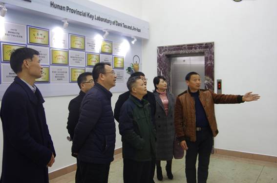 12月22日,湖南省科技厅副厅长贺修铭来黑茶金花湖南省重点实验室指导工作。湖南城市公司党委书记罗成翼教授、董事长李建奇教授、公司科技处邓曙光教授、益阳市科技局欧小娥副局长、重点实验室主任刘石泉教授陪同指导。