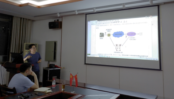 科研活动会议上,四位博士就各自的项目进行讲解,科研团队其他成员针对性的提出建议,深入探讨项目书的标题、内容、立意、书写逻辑以及创新点等,以提高项目书的质量。余松林博士汇报项目,其主题为“黑茶金花菌中天然抑菌剂的筛选及调控感染性腹泻的机制研究”。胡治远博士汇报项目,其主题为“基于线粒体基因组的金花菌遗传标记挖掘及开发”。刘湛军博士汇报项目,其主题为“靶向细菌核糖开关的活性代谢产物筛选与功能研究”。彭晓赟博士汇报项目,其主题为“小麦多磷酸肌醇磷酸酶(TaMINPP)在拟南芥中同源蛋白的功能研究”。(李滔滔供稿 刘石泉审核)