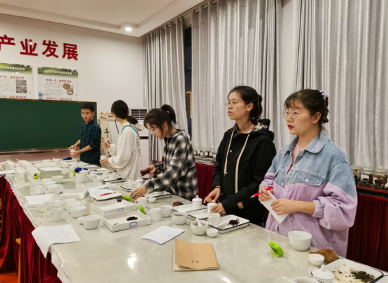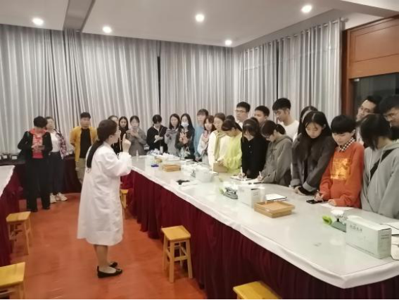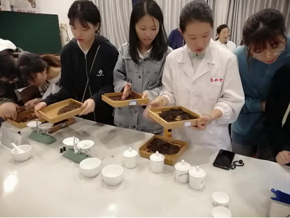 首先,蔡红梅以《茶叶感官审评》为主题,围绕我国六大茶类的特点、评茶的设备与要求等方面进行了详细讲授,让大家对茶叶品质鉴定、茶文化等方面有了更系统、科学的认识。之后,蔡红梅团队在基地茶叶审评室进行了评茶实操演练,详细的为大家演示了茶叶审评过程中的具体操作、技巧与细节。蔡女士蔼然可亲、幽默风趣的讲解方式,让大家在轻松愉快的氛围中学习到了丰富的茶叶审评与茶文化知识,在蔡女士的悉心指导下,大家对茶叶审评的理论与操作能力都有了快速的提高,在讲学即将结束时纷纷对蔡女士表示了由衷的感谢。