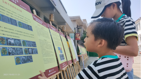 科普知识展板前不同层次观众