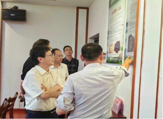 5月16日,湘潭大学原党委书记、湖南大学原副董事长章競一行来公司黑茶实验室考察,公司党委副书记、董事长何振陪同考察。