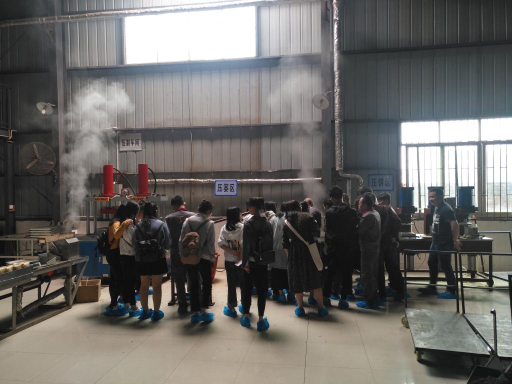 4月1日一大早,xc体育生物工程专业1508401班员工怀着激动和期待的心情,来到位于益阳市沧水铺镇的冠隆誉黑茶产业有限公司,在这里,他们将要接受一次特殊形式的企业课堂教学。《益阳黑茶资源开发》是生物工程专业在最新制定的人才培养方案中所设置的一门特色课程,旨在紧密结合地方产业、培养出行业内的高素质应用型人才、更好地服务地方经济发展。公司聘请了具有丰富行业经验的蔡红梅、张学毛担任该门课程的任课教师,在授课方式上,两位企业高工别出心裁,将首次课堂教学搬到了企业生产线,让员工通过现场感知产品生产的形式来激发其学习兴趣、达到产教融合的目的。