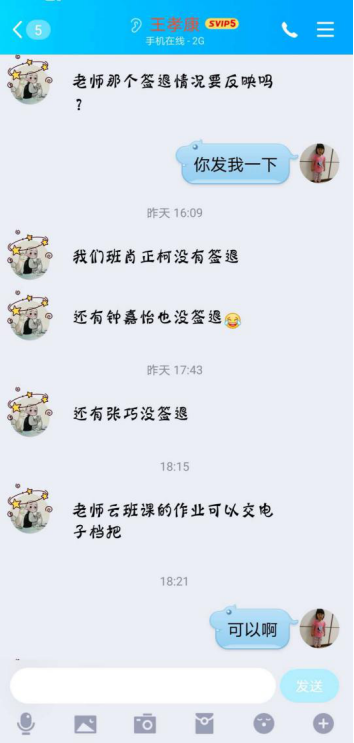 全班44名同学,有个别同学迟到,晚交作业,答题正确率低的情况,针对这些情况一般会通过QQ交流及时了解情况。