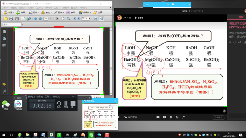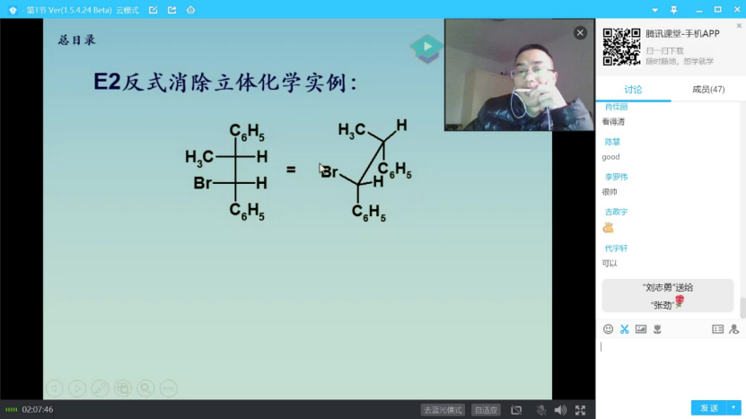 张劲老师的《有机化学》是一门基础课程,针对不同专业的特点,张劲老师采用了不同的教学模式。自210日以来,张劲老师进行了多次网络试课,并准备了备用方案。针对给排水工程专业,采用了录制视频与课堂串讲的模式;针对复合材料专业,最初采用的是雨课堂+腾讯视频分享的模式,但在实际授课中,发现雨课堂经常拥堵,后续采用腾讯课堂教学,并利用分享屏幕的功能加入化学软件的教学功能。员工反应良好,讨论热烈,教学效果优良。