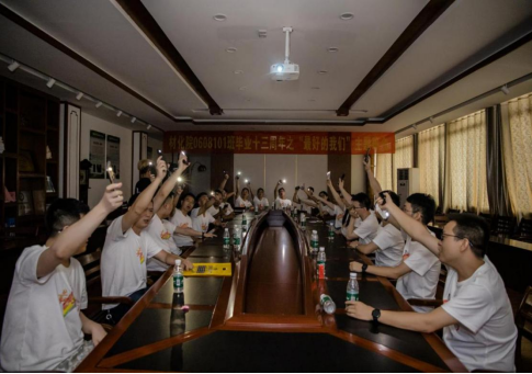 班会结束时,大家合唱了《朋友》、《同桌的你》、《十年》三首歌,高举着手机灯光“荧光棒”身子慢摇起来,进而将活动推向高潮,整个活动充满着温馨浪漫的氛围。